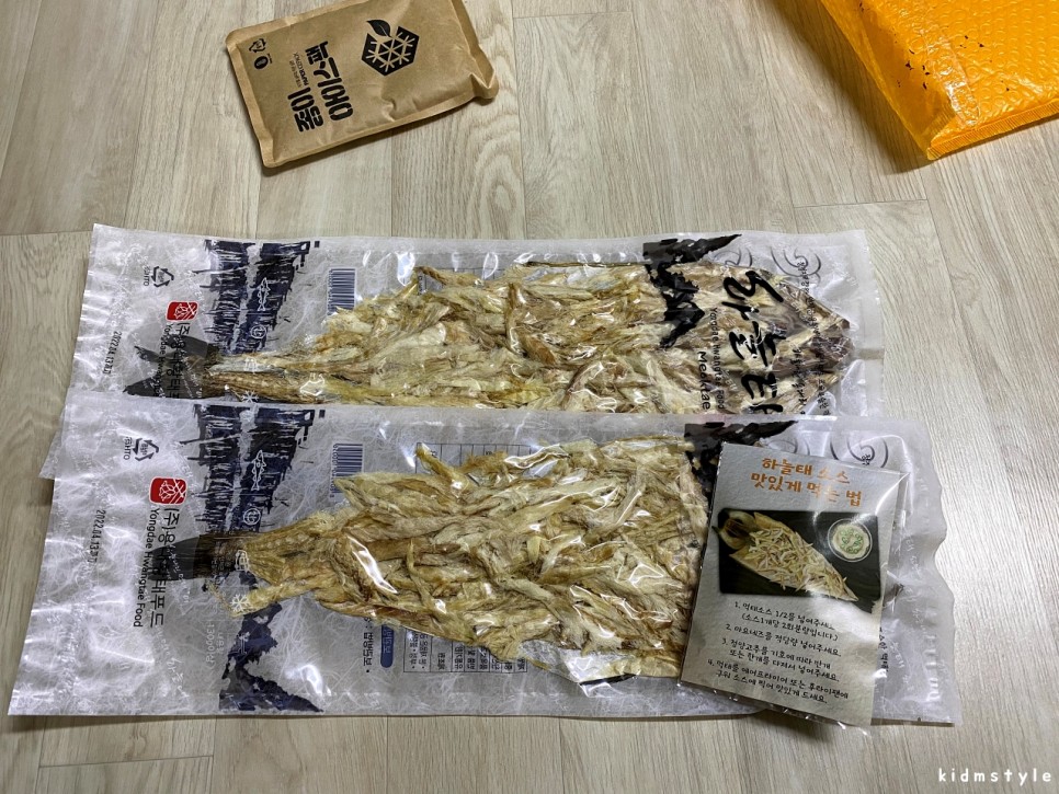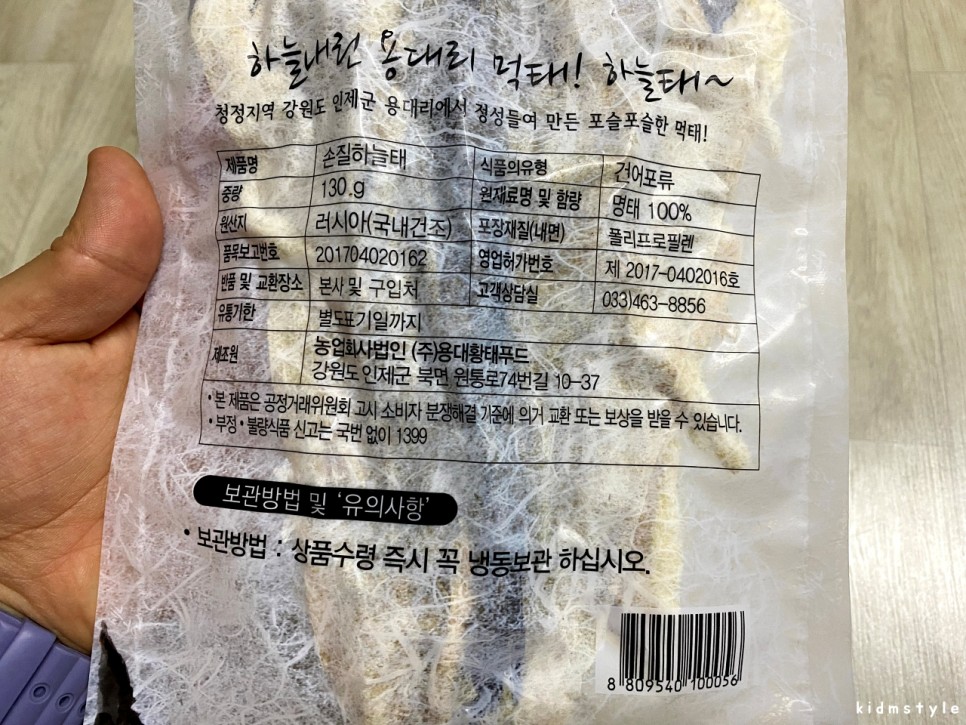 명태는 러시아산 명태이며 용대리에서 건조하고 먹태로 만들어졌다.