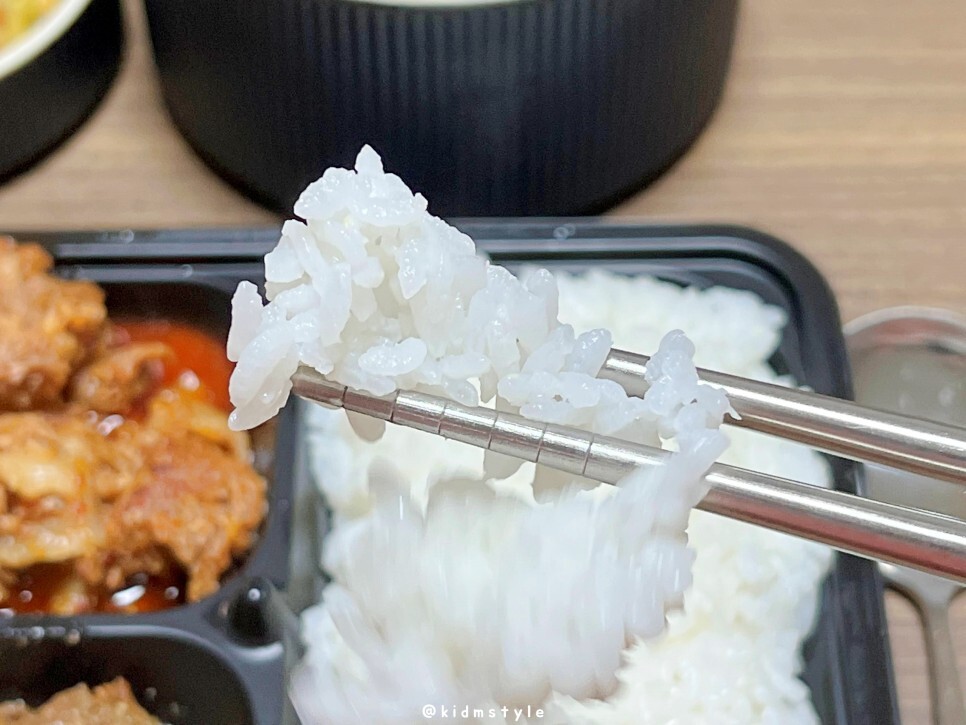 편의점 도시락을 맛볼 때 의외로 밥이 애매한 경우가 많은데요. 다행히 이 도시락의 흰쌀밥은 질지 않고 적당합니다. 맛있네요.