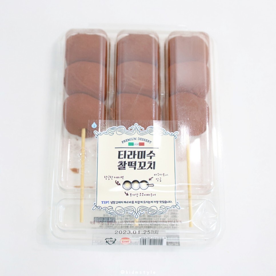 CU 편의점에서 구입할 수 있는 티라미수 찰떡꼬치라는 제품입니다. 가격은 3,400원 정도로 저렴한 편입니다.