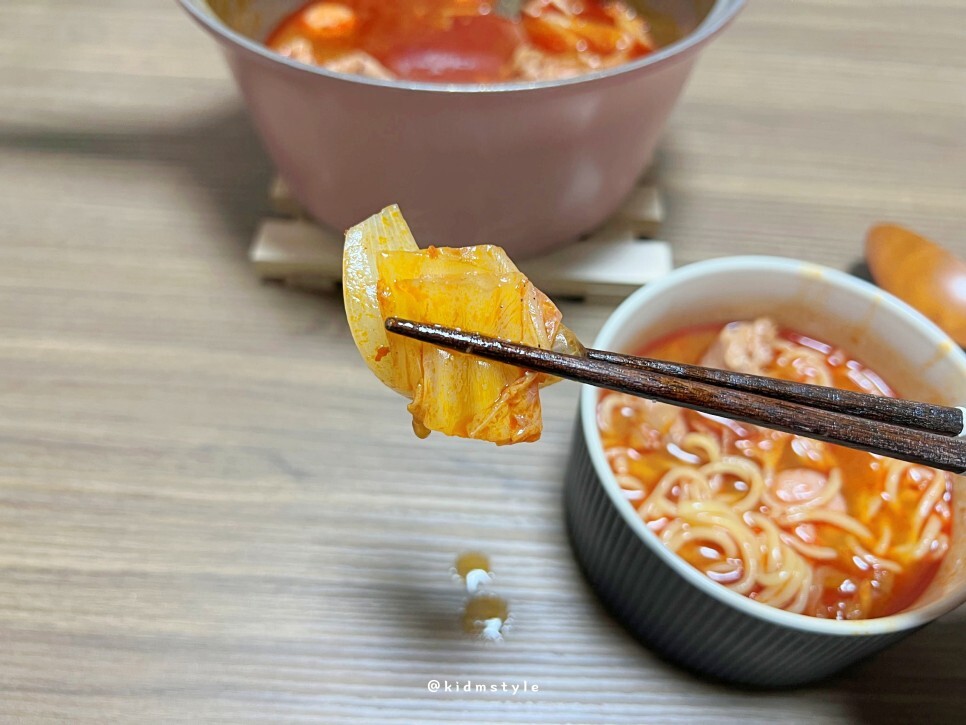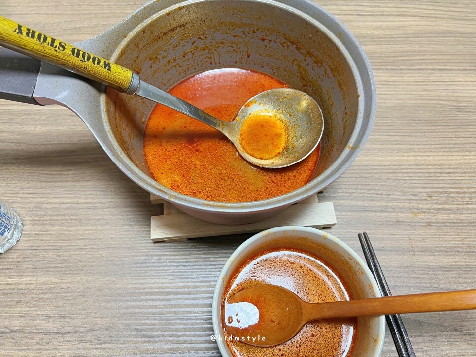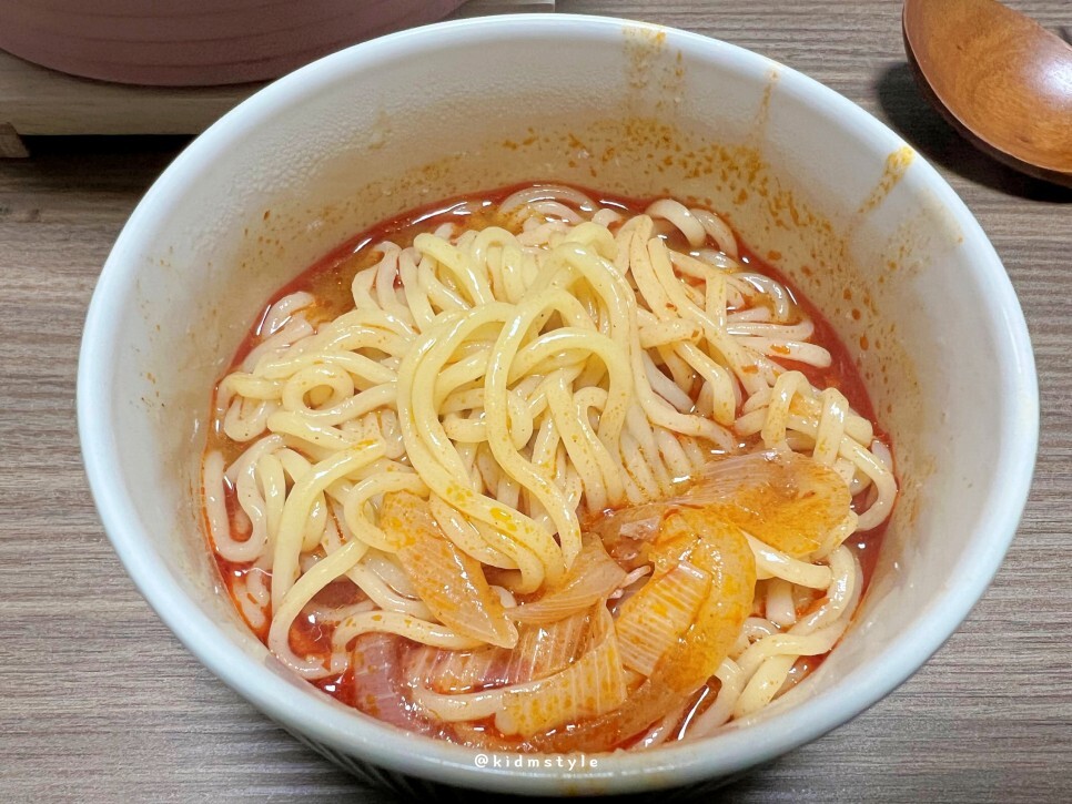 빨리 퍼지는 면부터 맛볼게요. 레시피 그대로 조리해서 그런지 면이 상당히 맛있네요. 부드럽고 쫄깃한 게 역시 생면의 매력이 그대로 전해지네요.