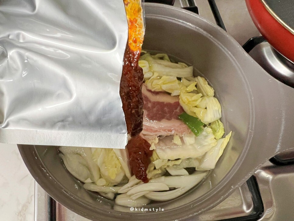배추 등 채소도 상당히 부드럽게 익었어요. 역시 밀키트는 국내 최고의 석학들이 연구를 거듭하여 만든 제품이므로 레시피 그대로 만드는 게 좋습니다.