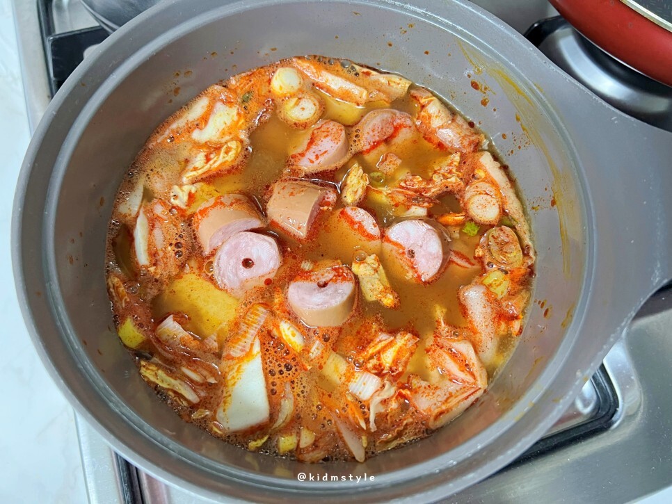 핫바도 먹기 좋게 잘라서 넣어주고요.