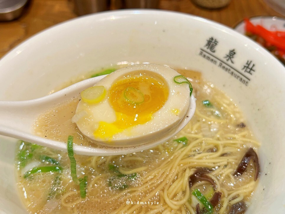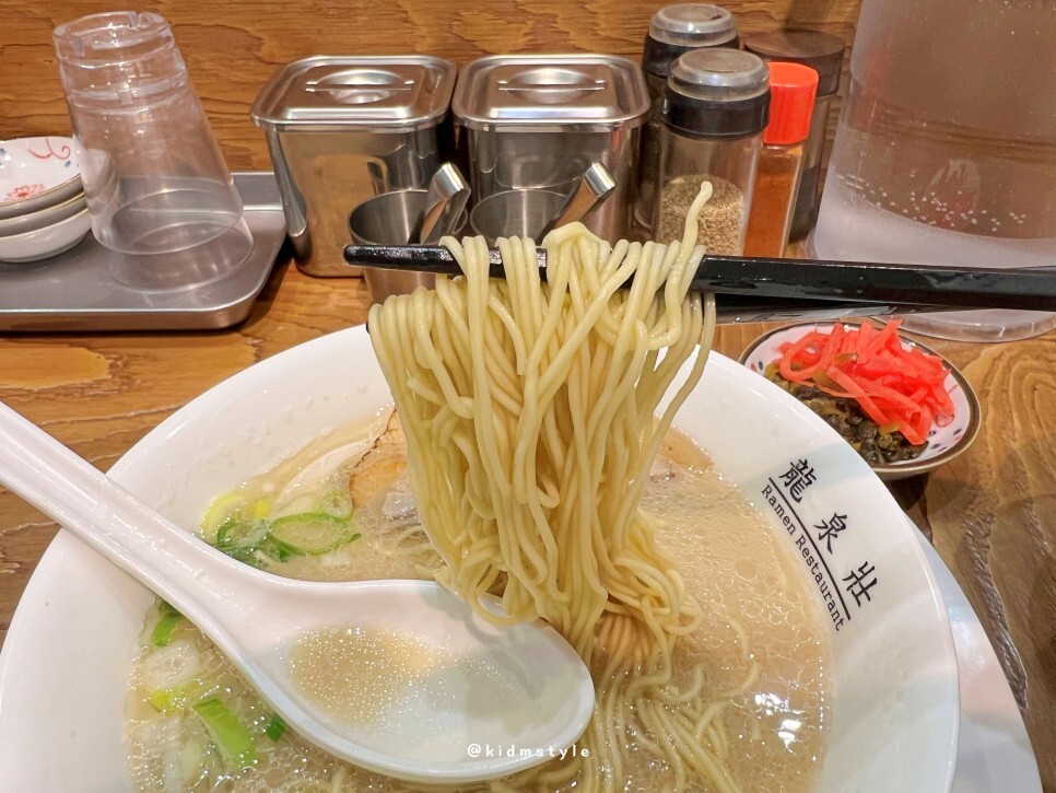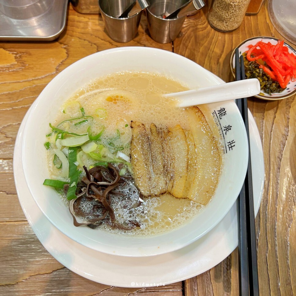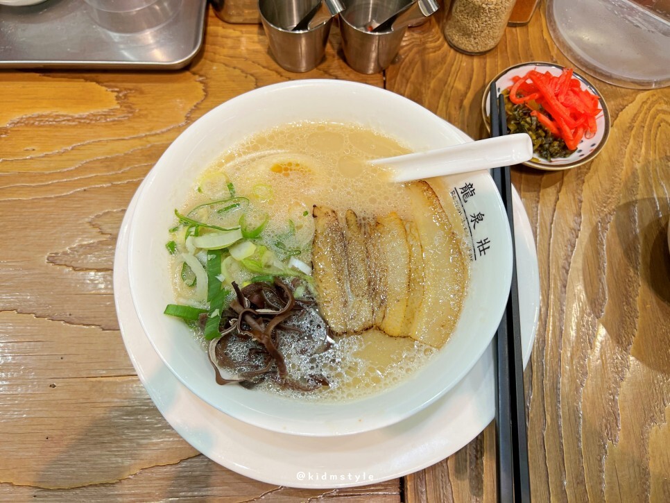 얼마 걸리지 않아 라멘이 나왔어요. 자주 오다 보니 사장님이 알아보시고 해운대에 있는 류센소 본점의 염도로 맞춰주셨어요. 오래간만에 맛보는 류센소 돈코츠라멘 기대가 됩니다.
