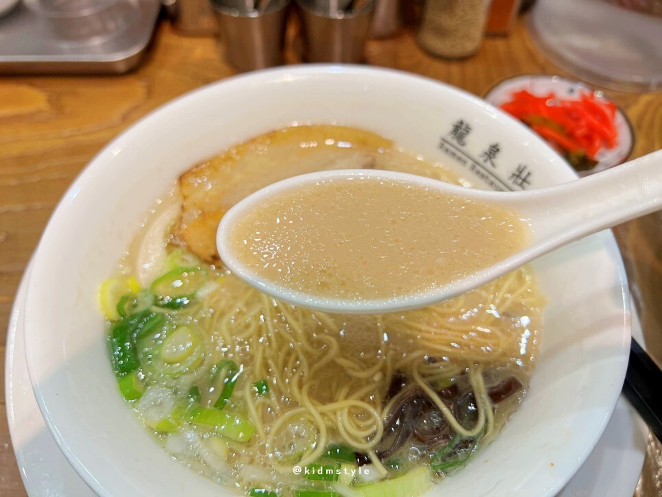 국물이 끝내줘요~ 광고 멘트가 생각나네요. 다소 진한 돈코츠 국물은 아주 만족스럽습니다. 현지의 염도를 즐기고 싶다면 해운대 본점 염도로 요청하시면 됩니다. 그냥 맛봐도 물론 맛있어요.