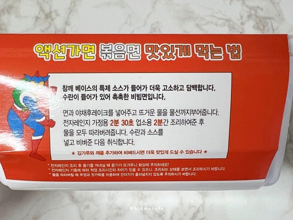 편의점에 가보면 아이들을 위한 제품이 꽤 많습니다. 오늘 소개할 제품은 어린이 라면으로 인기를 많이 끌고 있는 알파웨이 액션가면 볶음면을 소개해 봅니다. 이 제품은 CU뿐만 아니라 GS25, 세븐일레븐 등에서도 구입할 수 있습니다.