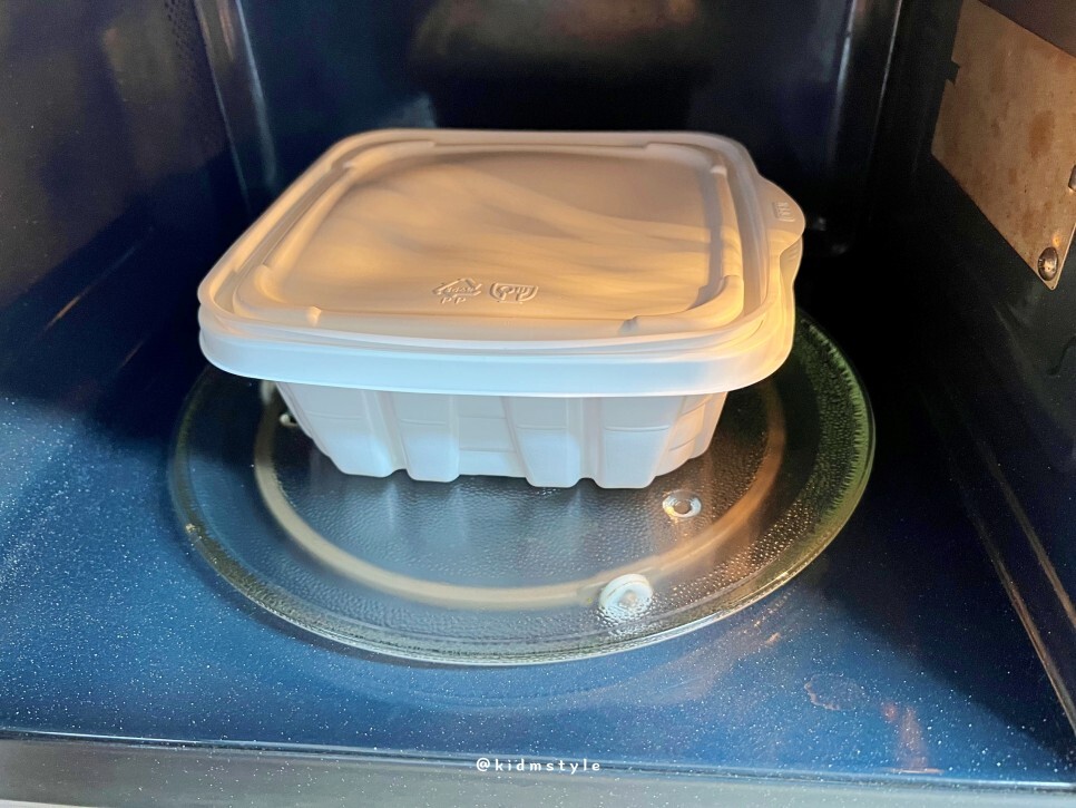 전자레인지로 가볍게 조리할 수 있는 제품이라 더 인기가 많은 것 같아요. 편의점 1000w 전자레인지 기준 2분, 가정용 700w 기준 2분 30초 돌리면 됩니다.