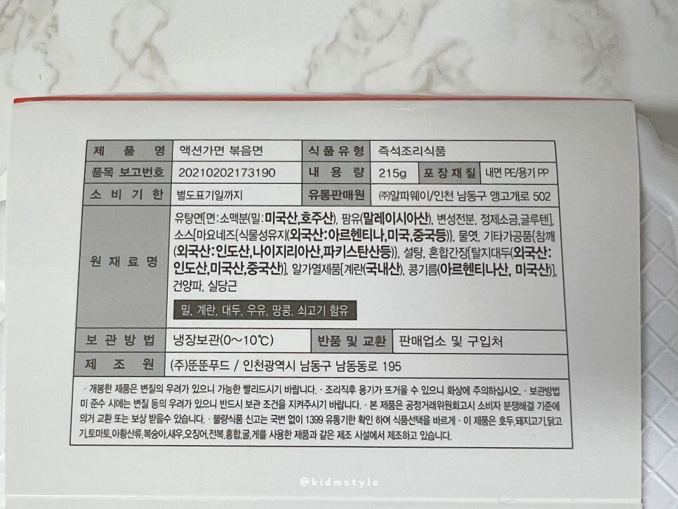 액션가면 볶음면 원재료명 참고하시기 바랍니다.