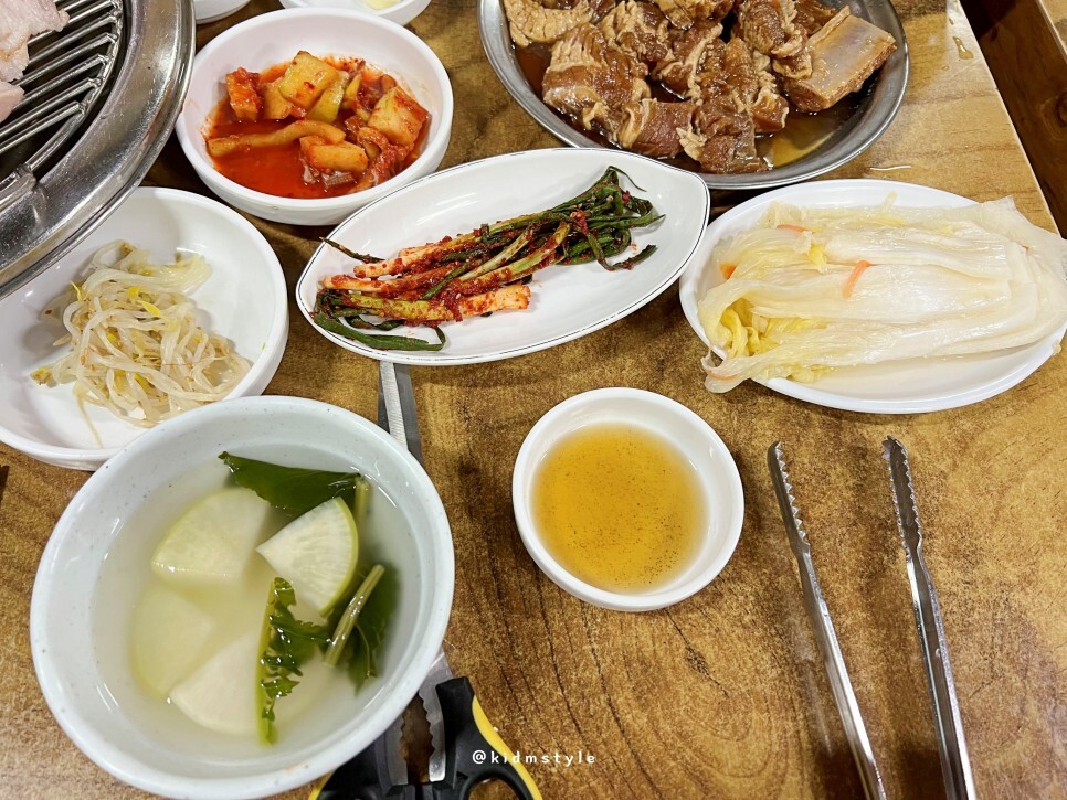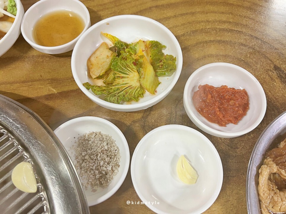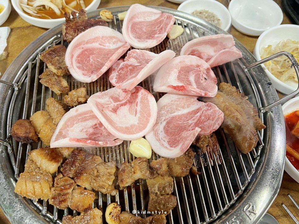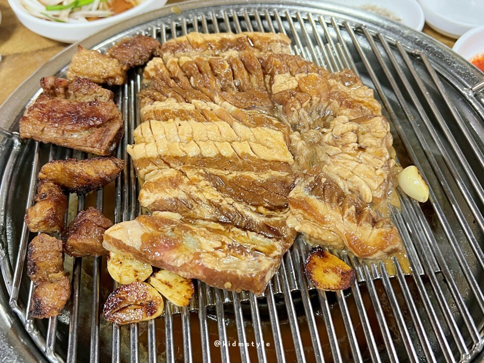 마늘도 더 요청해서 구워주고 지글지글 돼지갈비가 익어가는 asmr 들으면서 맛보며 힐링합니다.