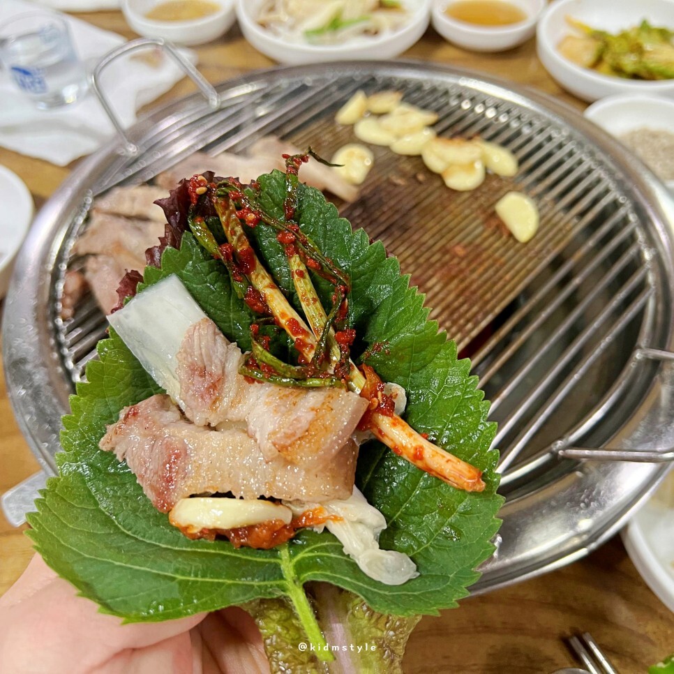 구운 김치와 대패까지 한 입에 맛보니 최고입니다.
