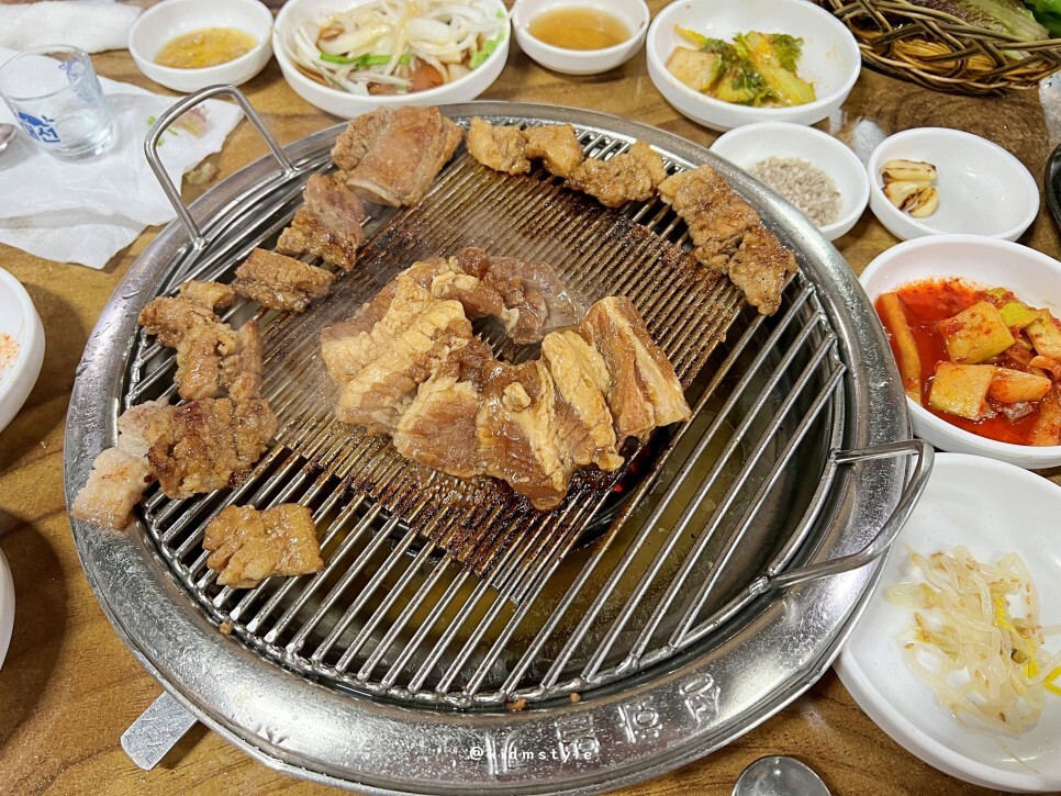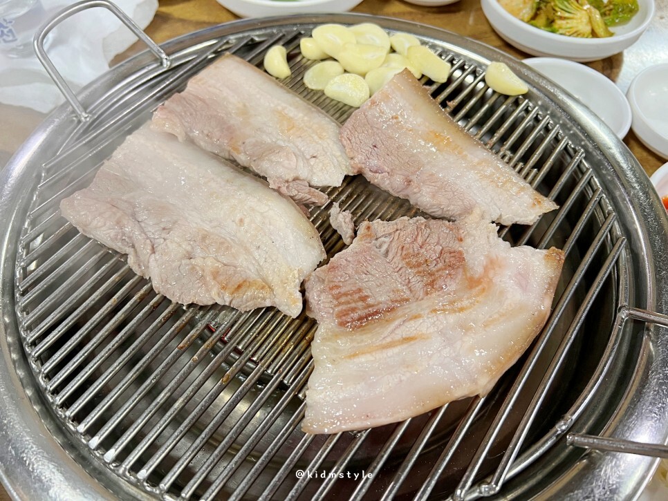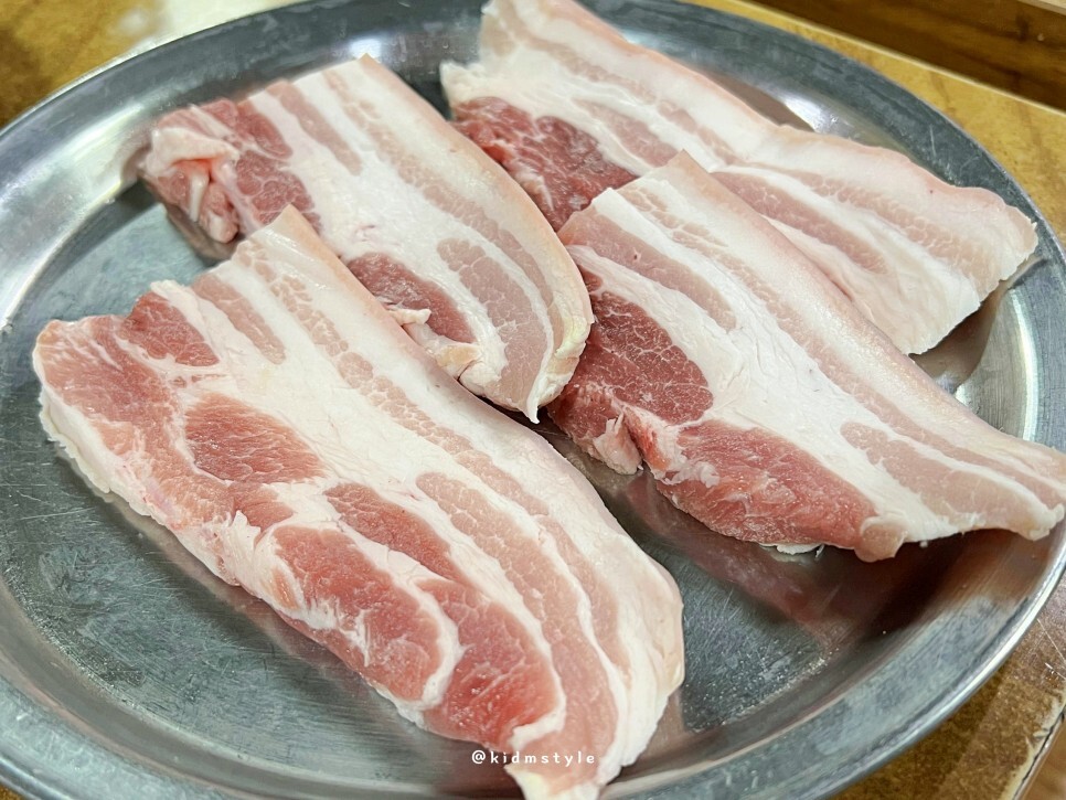 삼겹살 때깔 보이시죠? 이런 삼겹살이 진짜 맛있는데 요즘 이런 고기를 식당에서 찾아보기가 의외로 좀 힘들더군요.