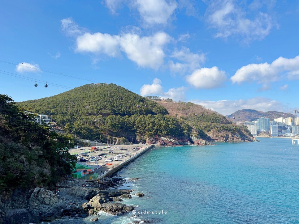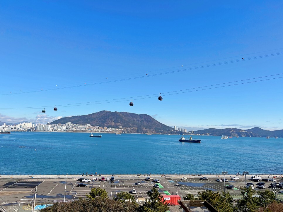 탁 트인 하늘, 미세먼지 하나 없는 날이라 바다가 너무 멋지게 다가온 날입니다. 암남공원 주차장 가는 길에 카페가 있어요.