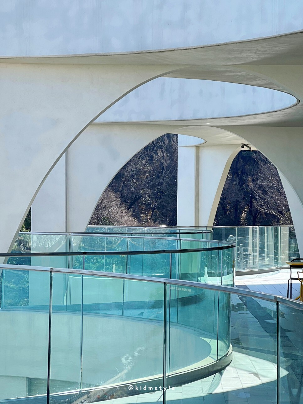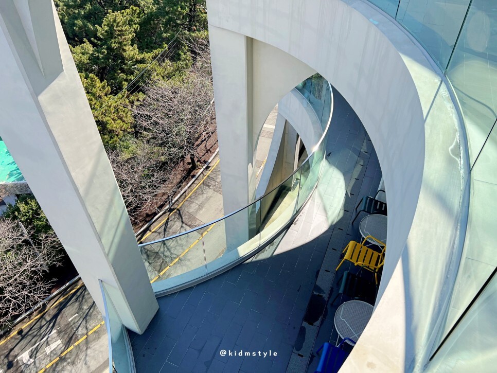 외부 디자인에서 아치 형태의 원형 디자인을 자주 볼 수 있는데 역동적인 파도를 상징하는 모티브라고 합니다.