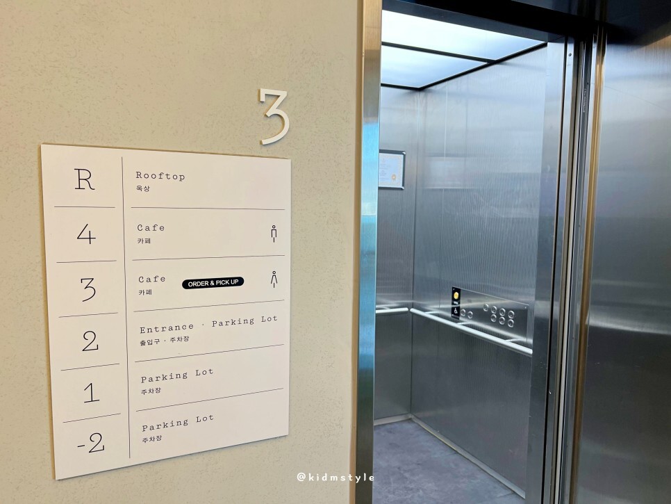 경사 지대에 건물이 있어서 층수가 조금 특이한데요. 주차공간도 넉넉하고 3,4,5층이 카페라 꽤 넓은 공간을 가지고 있습니다.