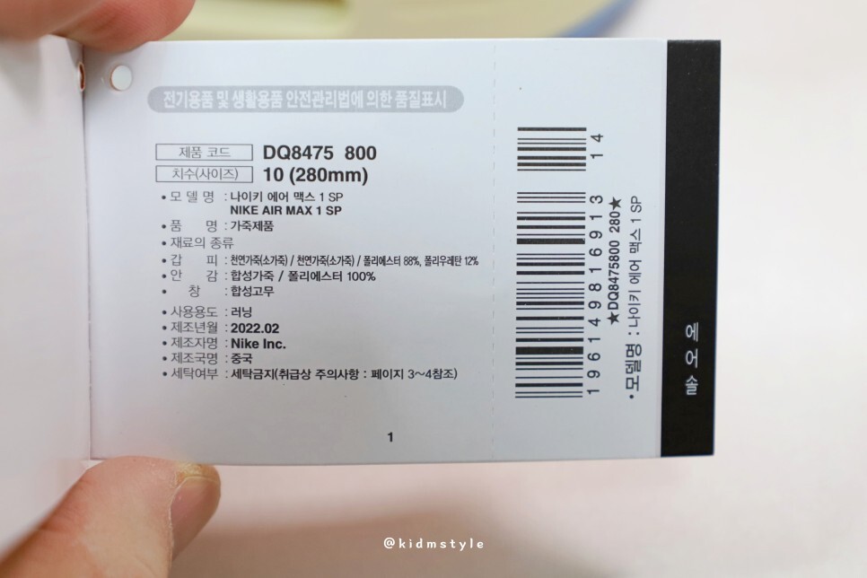 크림으로 구입 시 나이키코리아 탭이 달려 있을 수도 있고 안 달려 있을 수도 있는데 다행히 제가 구입한 제품은 달려있네요.
