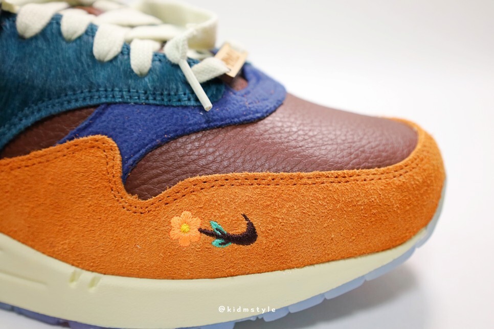 앞쪽 토캡 바깥쪽에 나이키 스우시와 꽃이 자수로 놓여있습니다. 이 신발을 보자마자 마음에 들었던 부분이 이런 디테일 때문이기도 합니다.