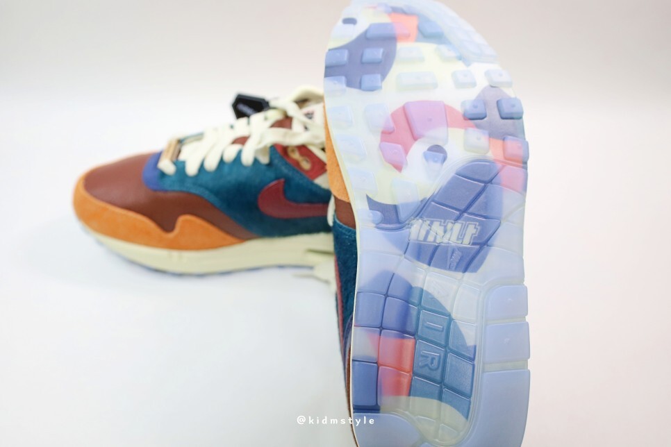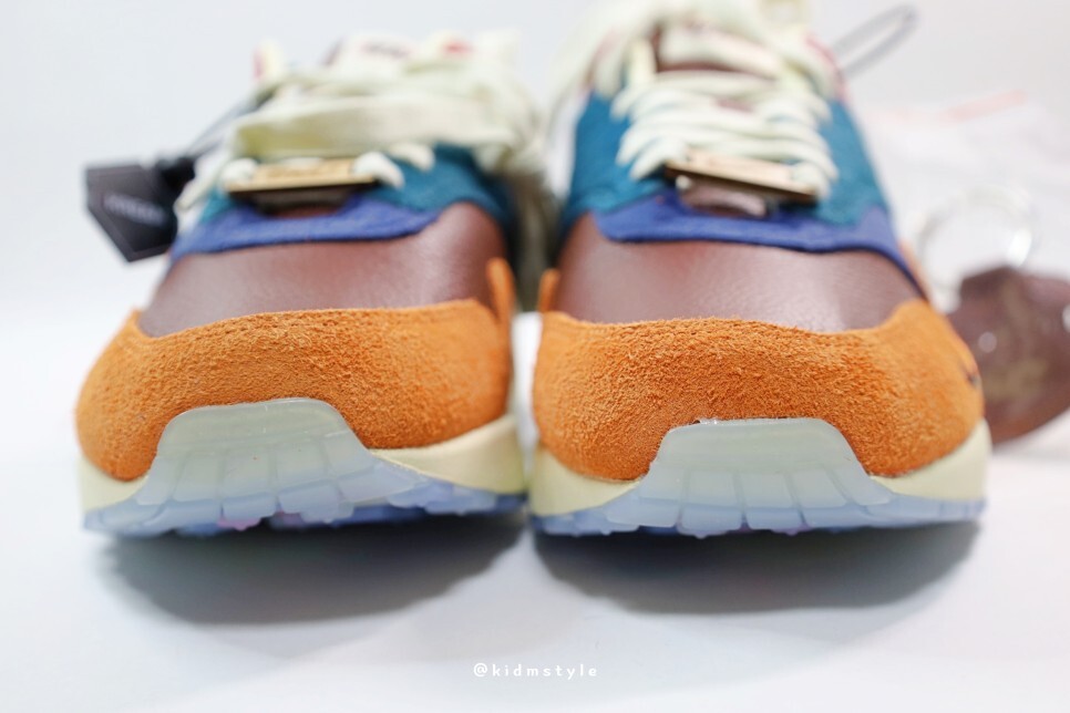나이키 에어맥스 1의 디자인을 기반으로 한 신발이라 에어 쪽은 맥스 1을 연상하게 합니다. 굽이 제법 높은 편이에요.