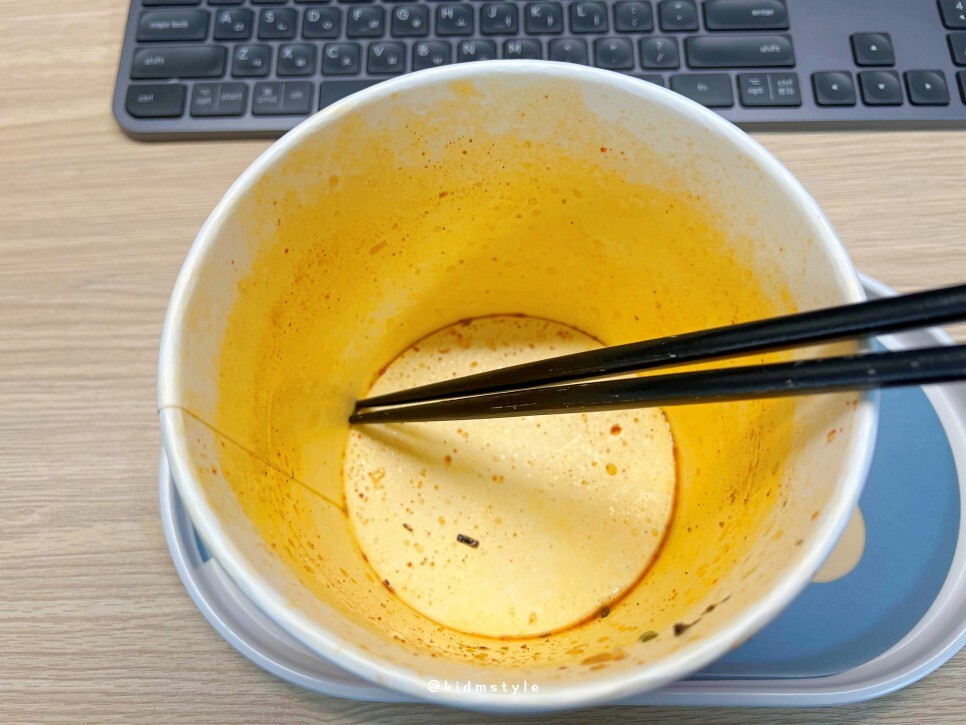 김칫국 마시지 마라! 할 때 그 김칫국 아시죠? 맛있게 잘 끓인 김칫국 느낌이 아주 강합니다. 김치 맛이 나면서 맵고 얼큰해서 해장용으로 최고의 컵라면 제품이지 않을까 생각해 봅니다.