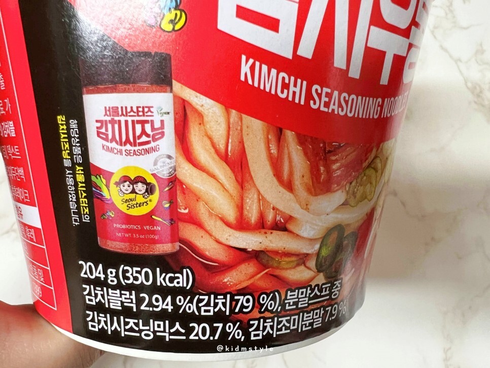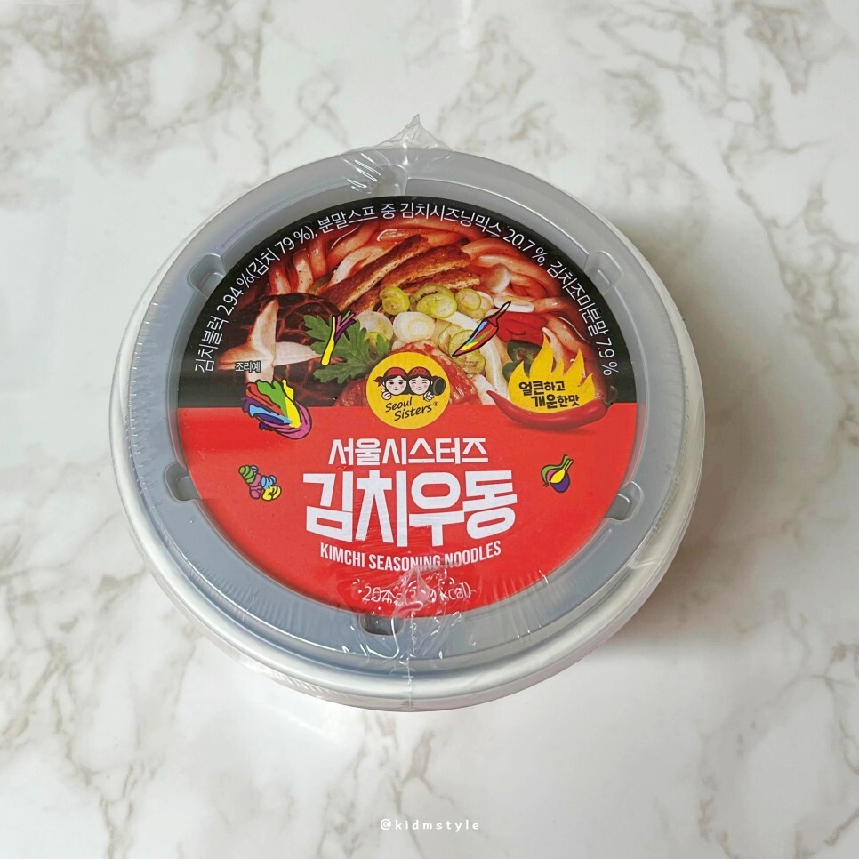 서울시스터즈 제품 요즘 자주 보이네요. 여러 가지 제품을 판매하고 있습니다. 오늘 소개할 서울시스터즈 김치우동은 3,000원 정도에 구입하였습니다. 온라인에서 여러 개 구입 시 더 저렴하게 살 수 있더군요.