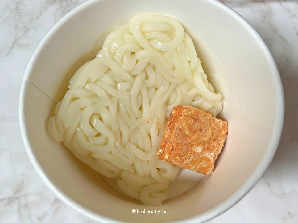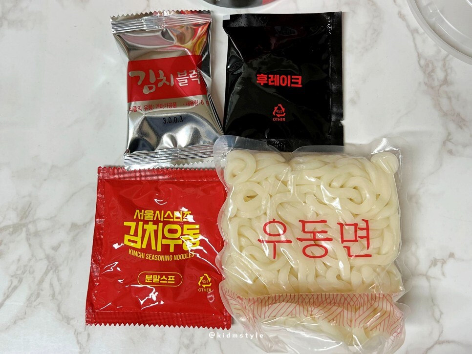 우동면은 생면이에요. 김치블럭도 넣어주고요.