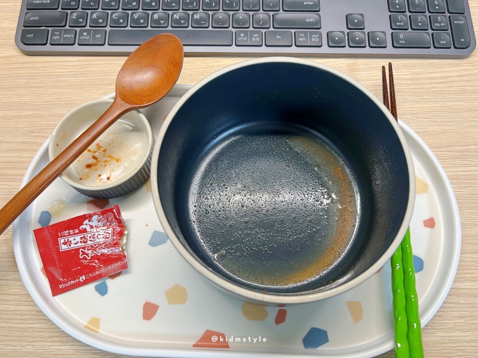 깔끔하게 비웠습니다. 저처럼 일본 하카타 현지의 느끼하고 묵직한 국물의 돈코츠라멘을 좋아하신다면 이 제품 추천드립니다. 밀키트 제품인데 완성도가 꽤 높습니다. 그러니 인기가 많은 거겠죠.