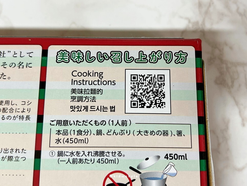상자 뒤에는 원재료, 조리법 등 다양한 정보가 적혀 있습니다. 물론 모두 일본어입니다.