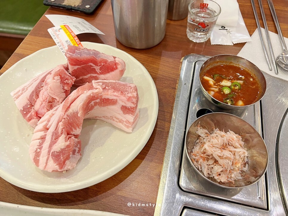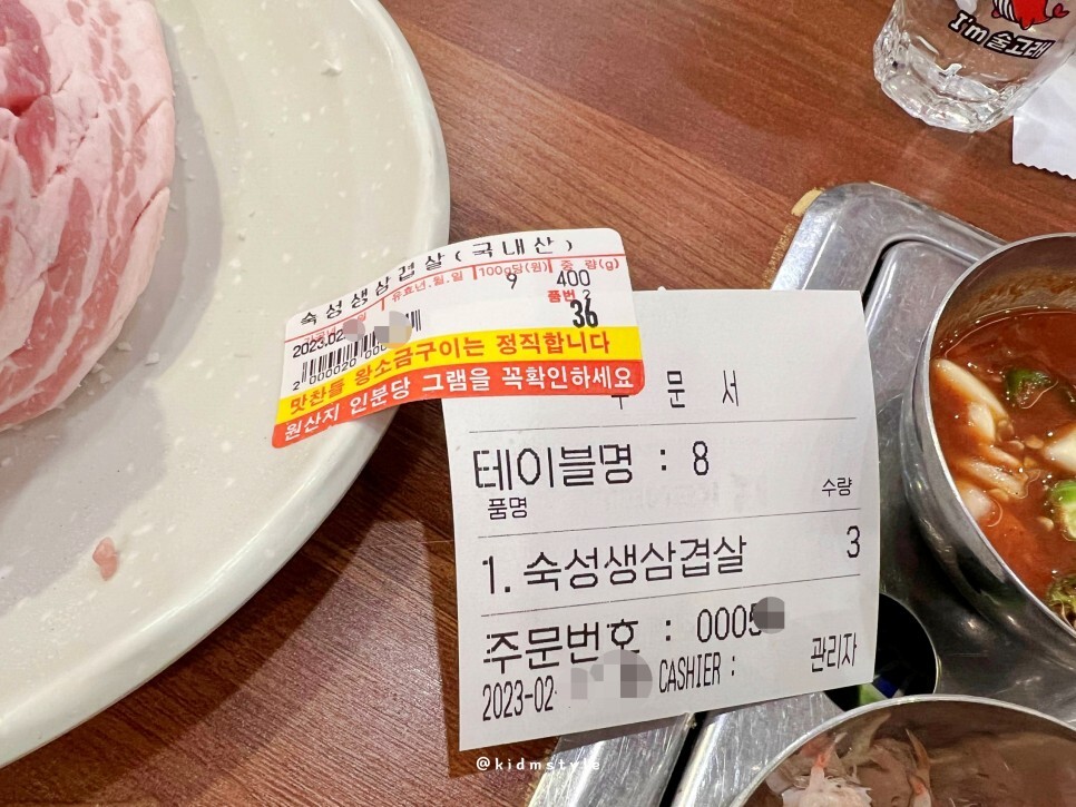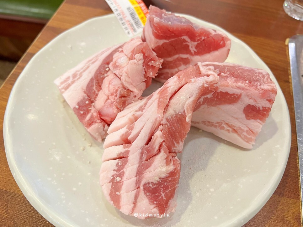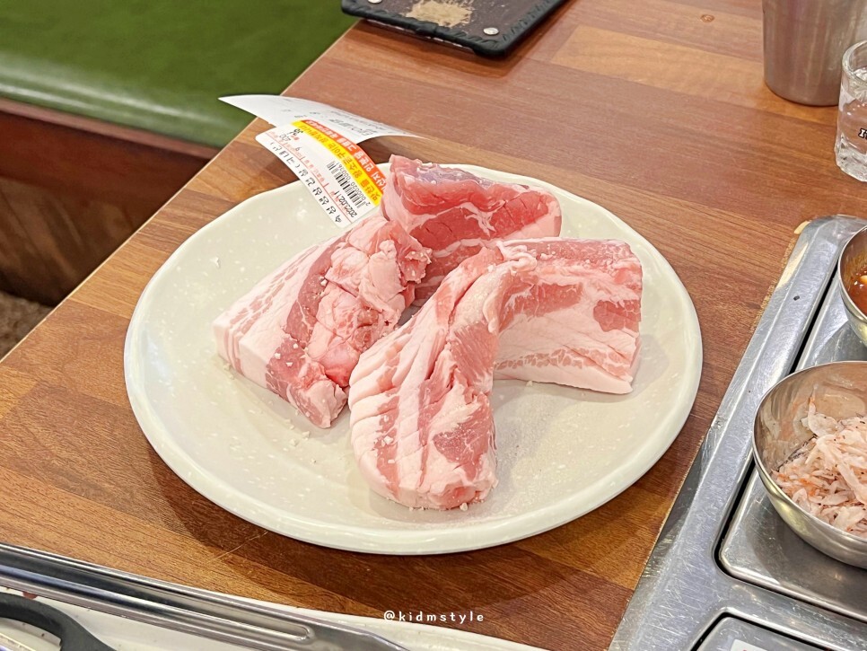 100g에 10,769원이니 고기 가격은 근처의 다른 집에 비해 조금 비싼 편이에요. 구워주기 때문일까요? 숙성 생 삼겹살을 3인분 주문해 봅니다.