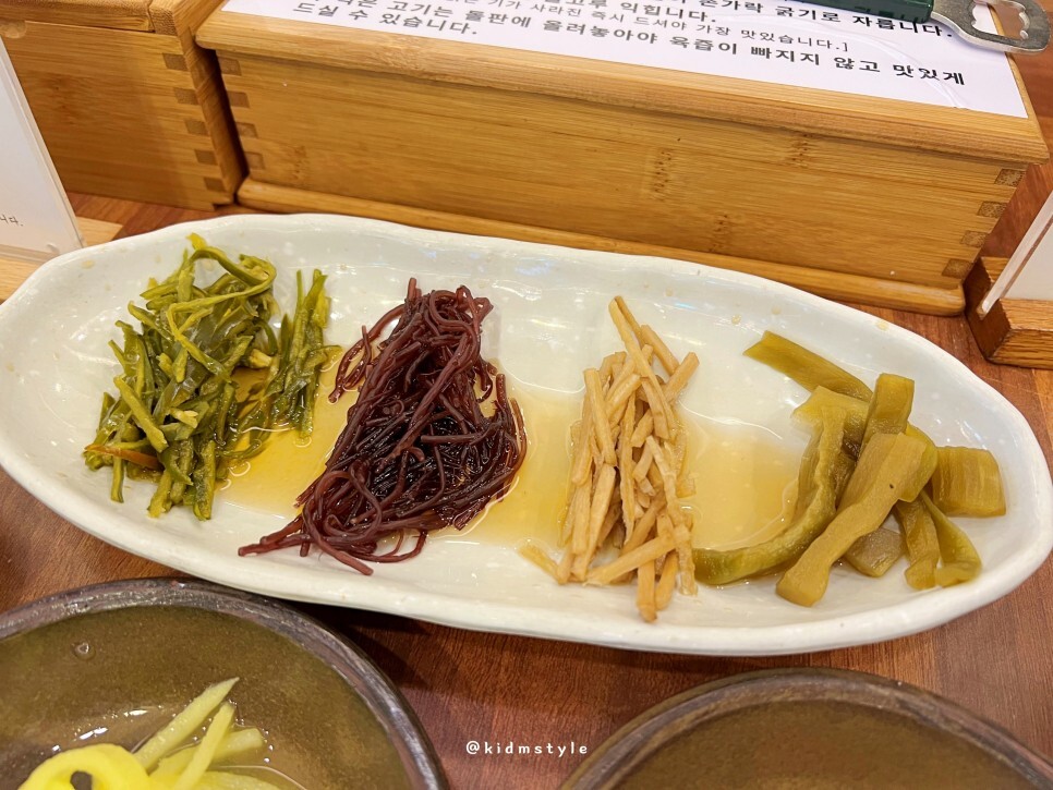 장아찌류의 반찬이 4가지 나오고요. 입맛 돋우기 딱 좋습니다.