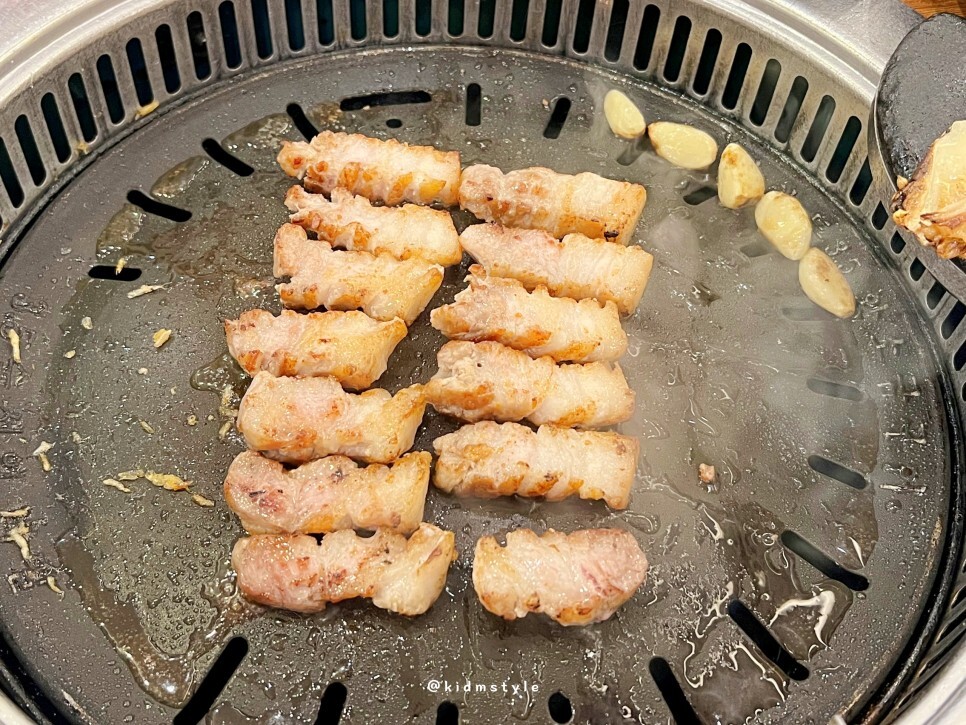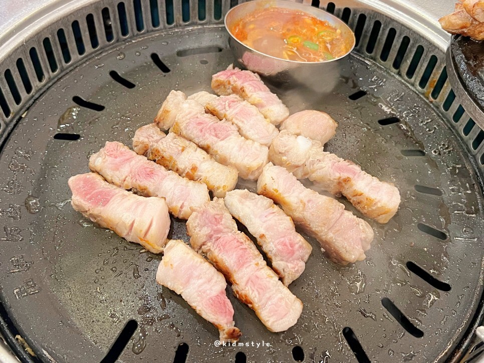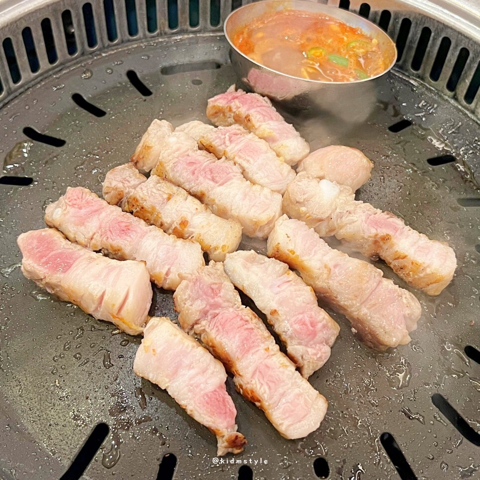 고기 때깔이 좋아서 한 번 더 찍어봅니다. 글 쓰면서 보니 삼겹살 안 먹은 지 오래돼서 상당히 군침이 도는 순간입니다.