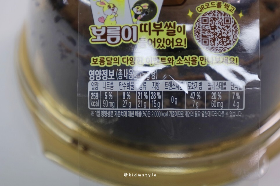 요즘 트렌드에 맞게 띠부씰이 들어가 있습니다. 캐릭터 이름은 보름이네요. 편리하게 맛볼 수 있도록 포크가 기본 제공됩니다.