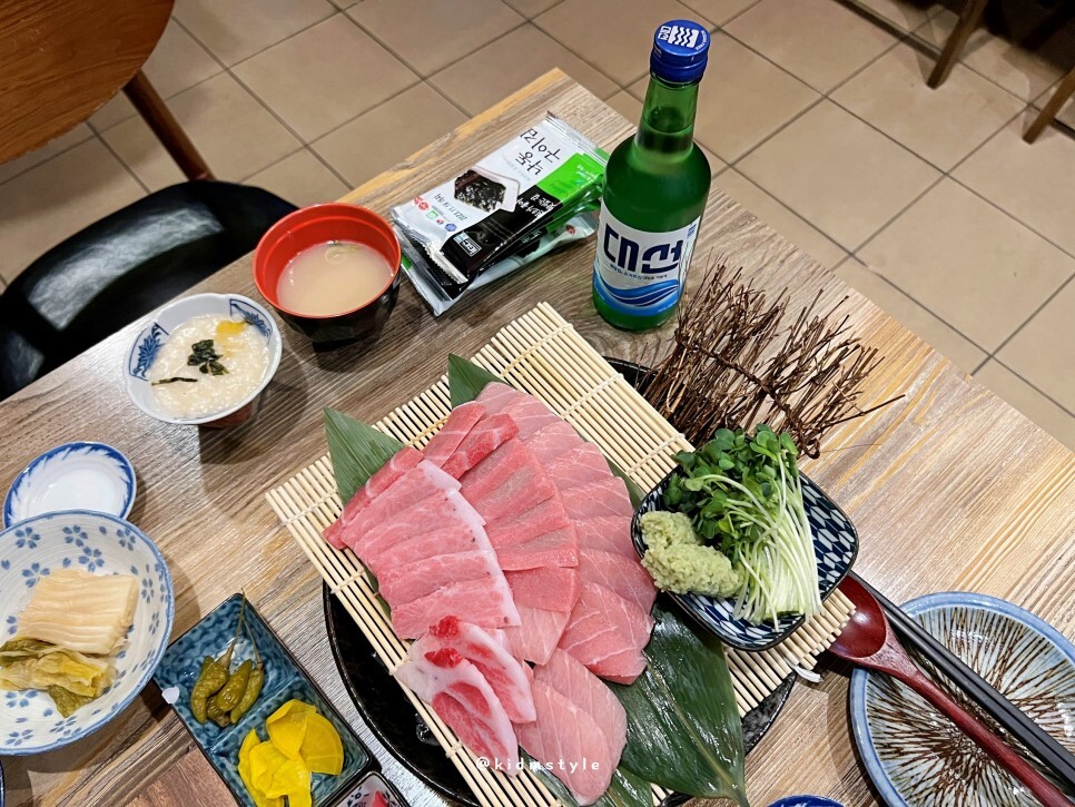참치, 생와사비, 무순 등의 구성입니다. 소주 한잔하기 딱 좋아 보이네요.