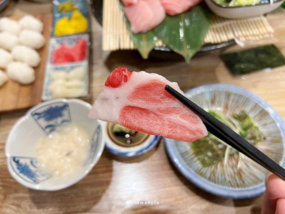 먼저 참다랑어 배꼽살을 맛보기로 합니다. 때깔이 참 좋네요.