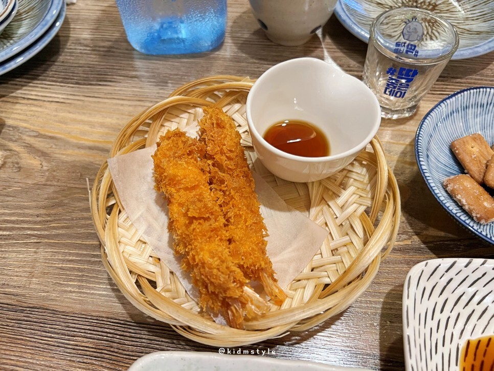 방금 튀겨서 바삭함이 느껴지는 새우튀김을 간장에 찍어 먹어보니 너무 바삭하고 맛있더군요.