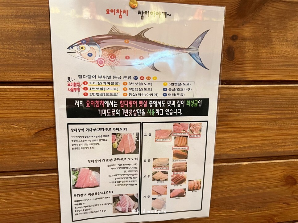 자리마다 참치 부위에 관한 설명이 잘 되어 있어서 좋네요. 저도 참치는 좋아하지만 자주 먹지 않아서 부위를 잘 모르는데요. 이렇게 설명해놓으니 하나하나 비교해 보면서 먹기 좋은 것 같네요.