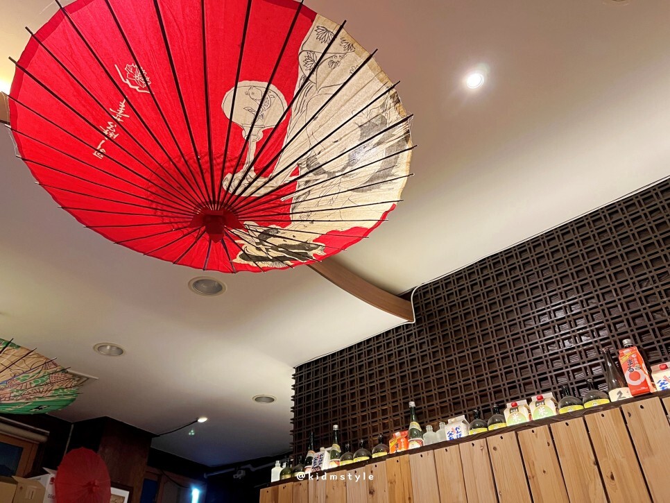 저녁시간이 조금 지나고 방문했습니다. 천장에 걸린 우산이 독특합니다.