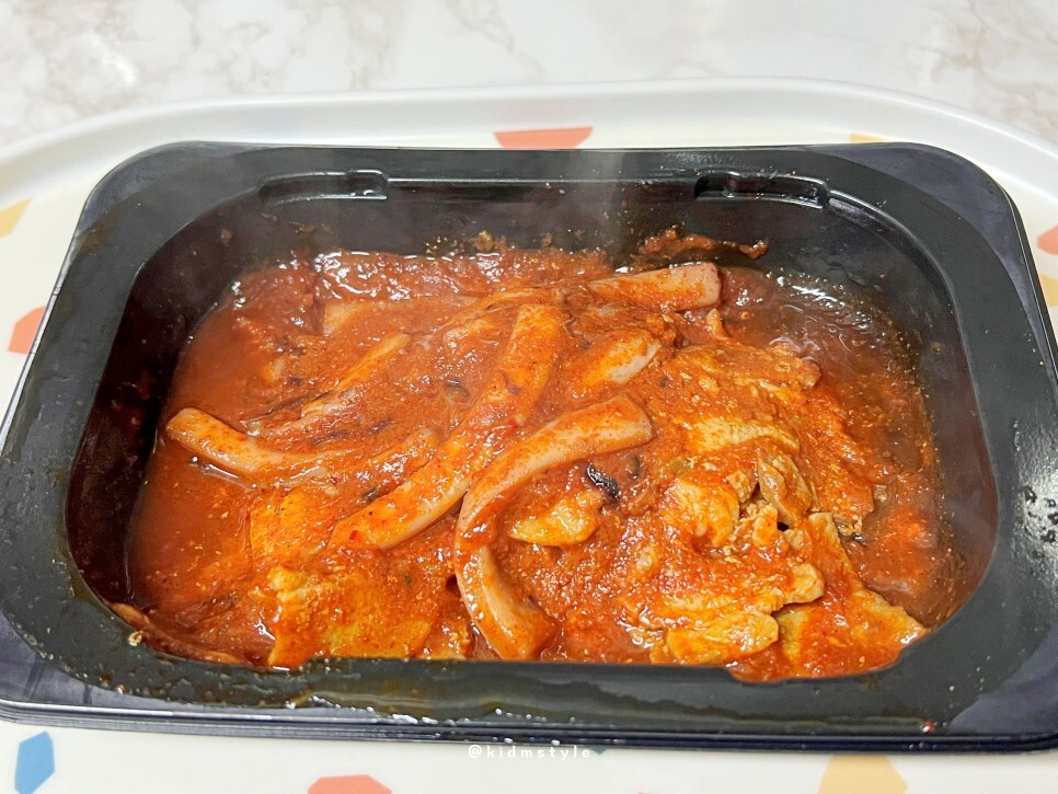 조리는 간편해요. 전자레인지로 조리하면 되는데 가정용 700w 기준 1분 30초 돌리면 됩니다. 조리 후 수증기로 인행 용기가 뜨거울 수 있으니 30초 후에 개봉하면 됩니다.