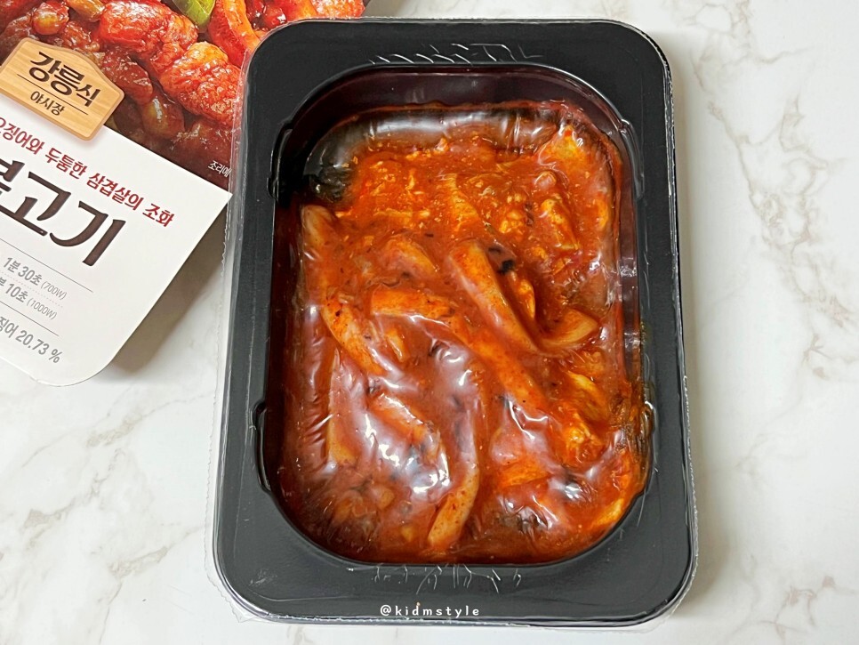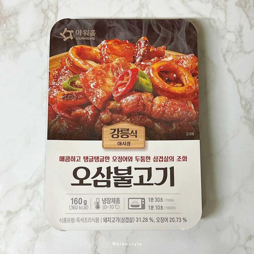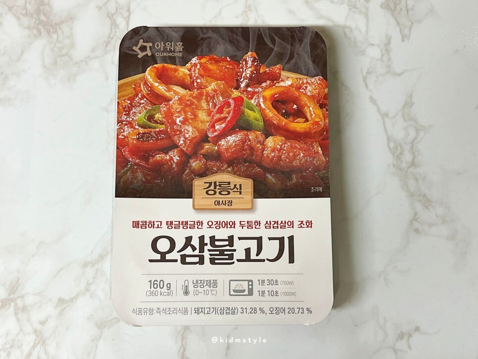 요즘은 가볍게 혼술 하기 좋은 안주가 많아요. 온라인으로 구입할 수 있는 밀키트 안주도 많고 마트나 편의점에서도 손쉽게 구할 수 있죠. 오늘 소개할 제품은 CU 편의점에서 구입한 아워홈 강릉식 야시장 오삼불고기라는 밀키트입니다.