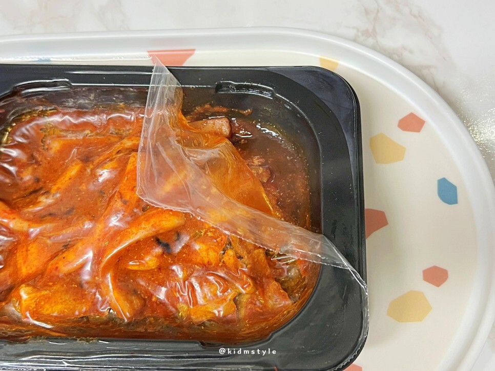 양념은 맵지 않고 딱 적당한 수준이에요. 물론 평소 매운 음식을 잘 먹는 제 입맛 기준이긴 하지만 누구나 맛있게 드실만한 양념이라고 말씀드릴 수 있겠네요.