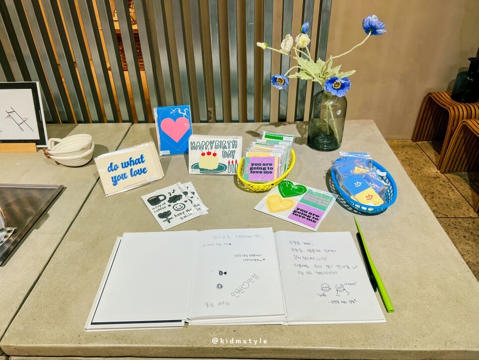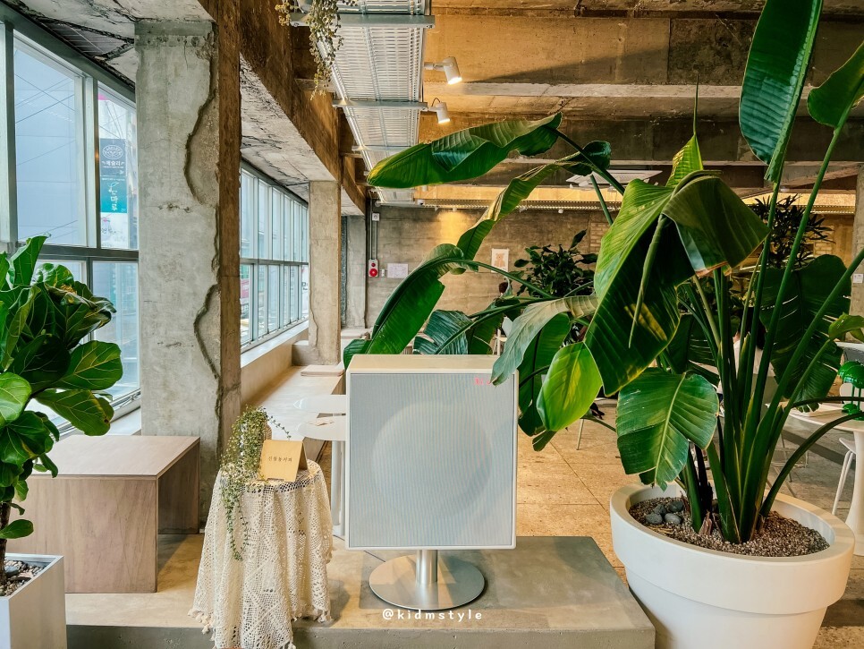 카페에 들어서면 만나는 풍경입니다. 노출 콘크리트 공법이라 천장이 높아서 개방감이 좋네요. 궁금해지는 공간입니다. 하나하나 소개해 볼게요.