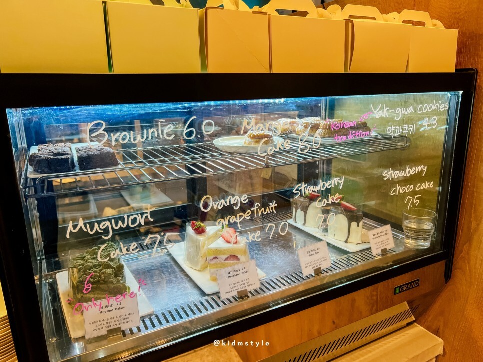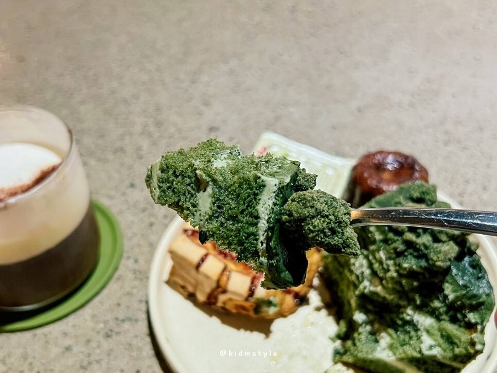 케이크 맛집이기도 해요. 무슨 케이크를 맛볼까 하다가 쑥 케이크를 추천받았어요.