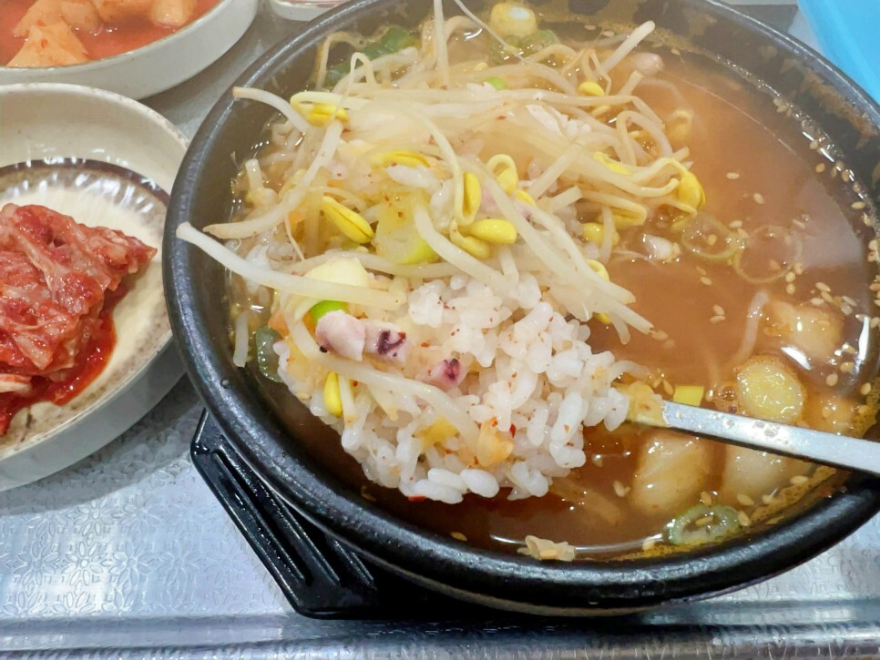 콩나물국밥에는 콩나물이 많아야죠? 푸짐한 콩나물 덕분에 즐거운 식감을 제공해 줍니다. 해장 맛집이라는 수식어가 괜히 붙는 게 아니에요. 콩나물국밥은 언제 먹어도 맛이 좋은 것 같아요.