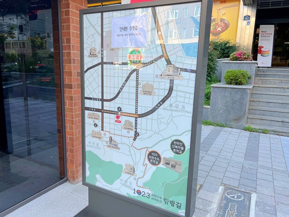 바로 옆에 1023 피란수도 세계유산 탐방길 안내판이 있는데 현재 수정 중이라는 점 참고하시고요.