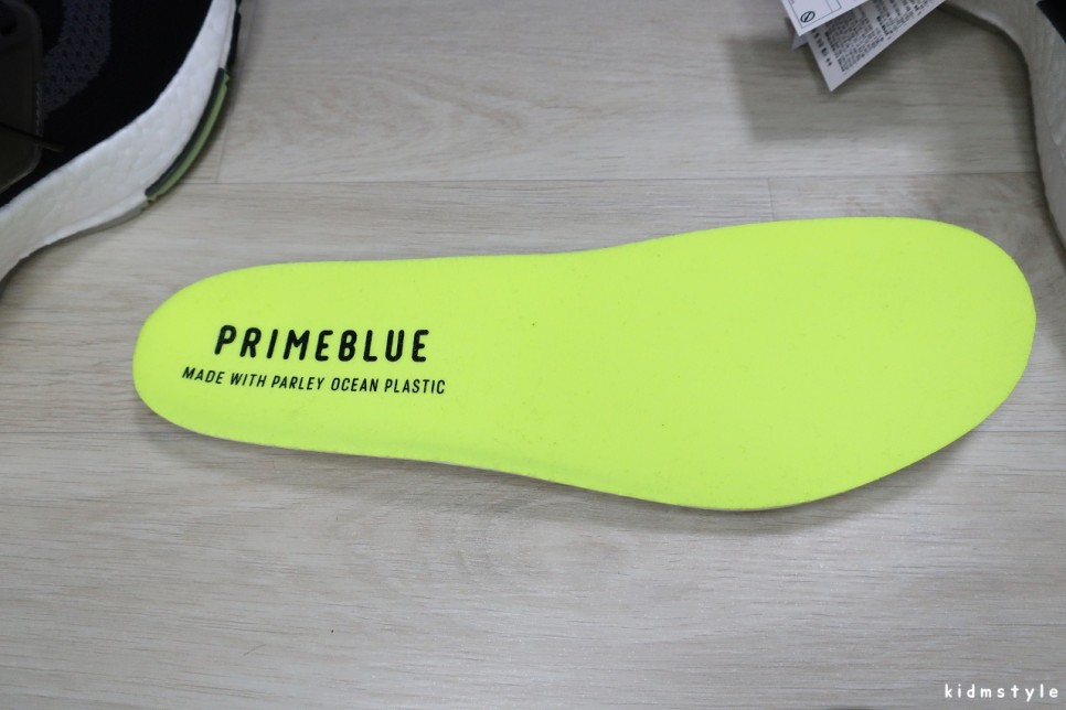 팔리 오션 플라스틱이 사용된 고기능성 재활용 원단인 프라임블루로 만든 친환경 제품입니다. 92%의 프라임블루 원사가 함유된 직물로 갑피의 50%를 제작하였으며, 버진 폴리에스테르 사용을 전면 배제하였습니다.