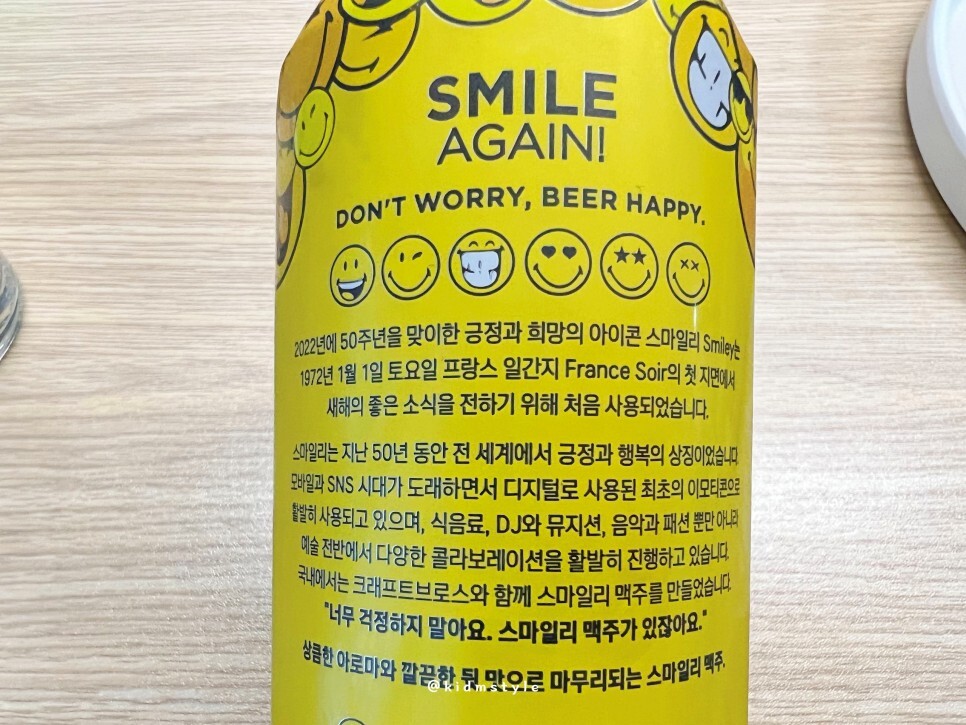 상큼한 아로마와 깔끔한 뒷맛으로 마무리되는 스마일리 맥주 기대가 됩니다.