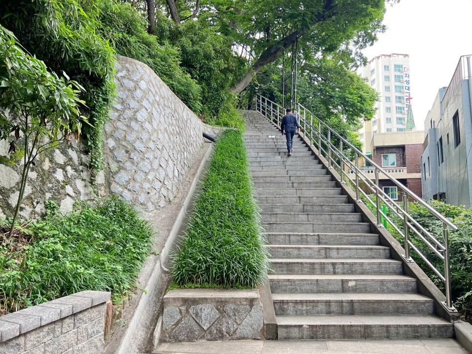 산책로를 돌다 보면 오르막길, 계단을 만나게 되는데요. 한번 올라가 보도록 하겠습니다.