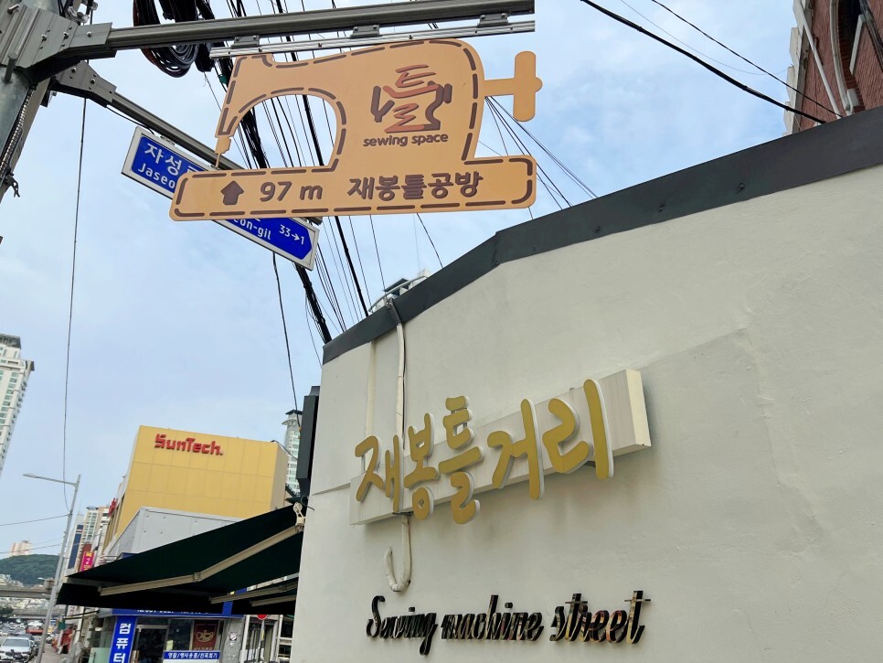 이쪽에는 재봉틀 거리가 조성되어 있습니다. 재봉, 봉제에 관련한 업체가 줄지어 영업 중인 재봉틀 거리예요.