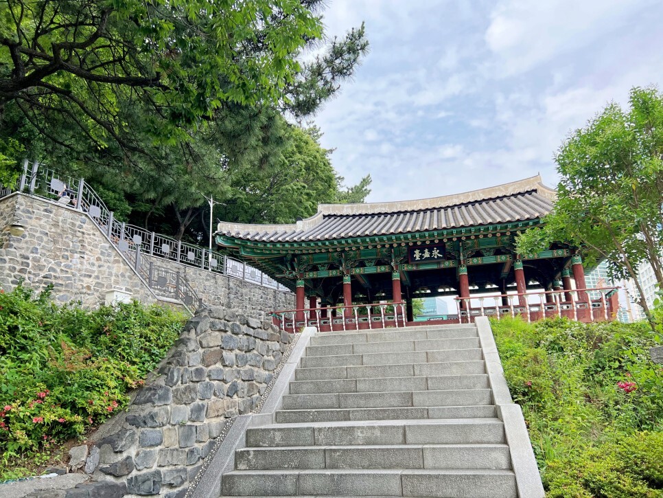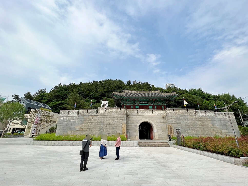 진시장 쪽 입구는 부산진성의 서문입니다. 앞에 보이는 것은 금루관이에요. 멋지게 잘 정비된 모습이 공원에 대한 기대감을 한층 더 올려줍니다.