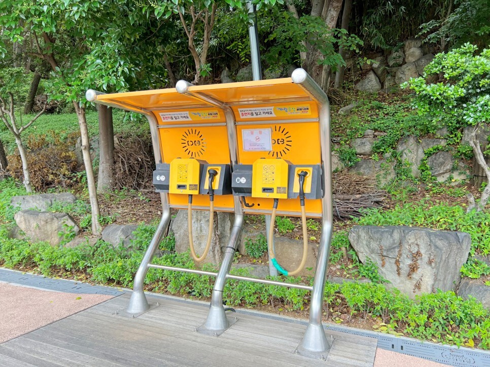 공원 가운데에는 산책 후 흙먼지를 털고 갈 수 있는 기계도 준비되어 있습니다.