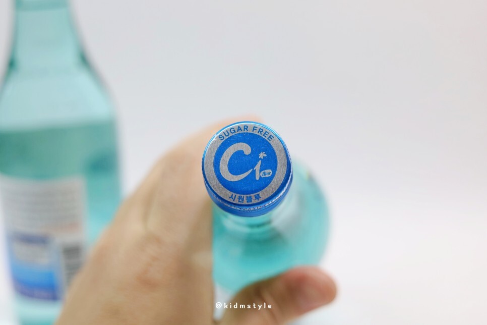 마시기 전에 시원블루를 한번 살펴보기로 합니다. 병 색깔이 참 예쁘네요.