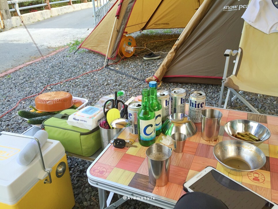 2014년 경 캠핑하던 사진인데요. 이때도 C1블루를 즐겼네요. 한창 소맥을 즐기던 시기였던 것 같습니다.