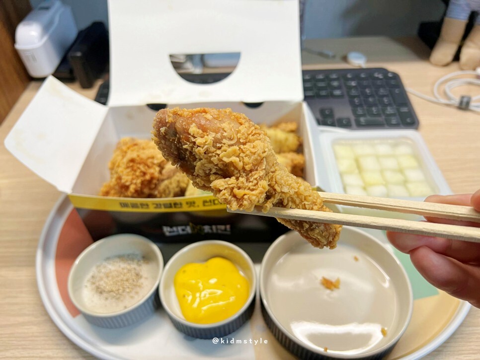 안주를 준비해서 음식과 함께 맛보기로 합니다. 썬더치킨 후라이드입니다.